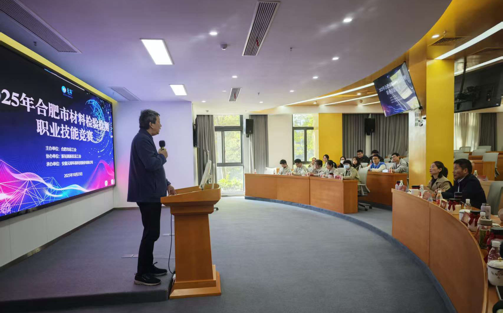 10 月 23 日,由元琛科技工会牵头组织的新站高新区 2025 年合肥市材料检验检测职业技能竞赛,在康菲尔科技火热开赛。来自全市7 家重点材料企业的检测技能精英齐聚一堂,以 “以赛促学、以赛促练” 为目标,在理论与实操的双重考验中展现专业素养,用精准操作与严谨态度,共同书写材料检验检测领域的 “匠心答卷”。