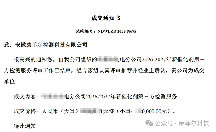 新年伊始,康菲尔科技成功中标中铝集团下属分公司2026-2027年新催化剂第三方检测服务项目,以"开局即冲刺"的姿态,再度彰显在催化剂检测领域的核心竞争力!!