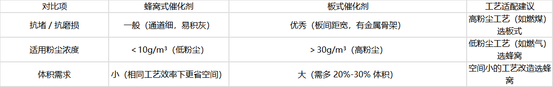 低比表面积:脱硝效率较蜂窝式低5-10%,但抗飞灰磨损性能优异。