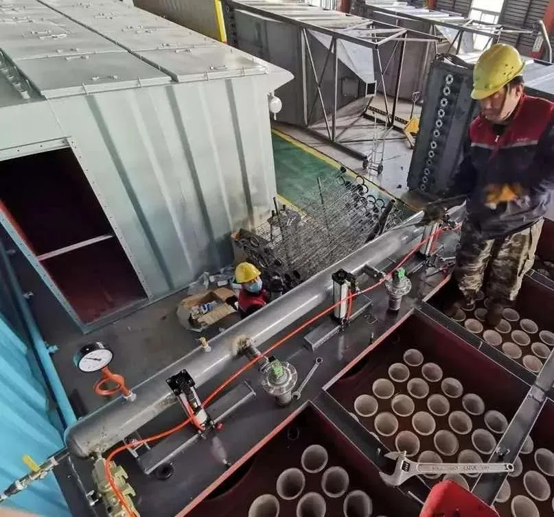 1、打开上面的检修门,直接查看布袋的上口和周边的情形,完好的除尘布袋和破损的布袋出口处肯定不一样!运行中手动逐一关闭各气室同时观察排放口,确定漏灰的室。