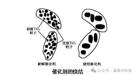 长时间暴露于450℃以上的高温环境中可引起催化剂烧结,导致催化剂中TiO2晶形发生变化,颗粒增大、表面积减小,活性降低。加入WO3可最大限度地减少催化剂的烧结。