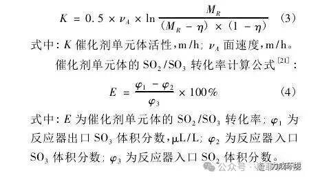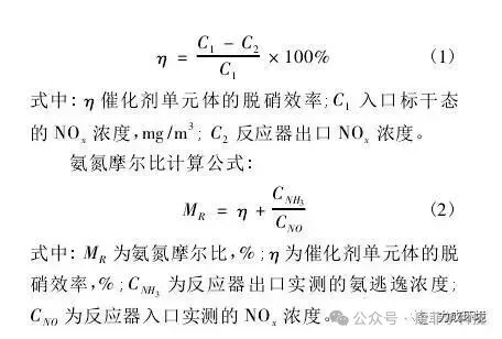 2.1 催化剂工艺特征参数计算评价方法催化剂单元体的脱硝效率应计算公式: